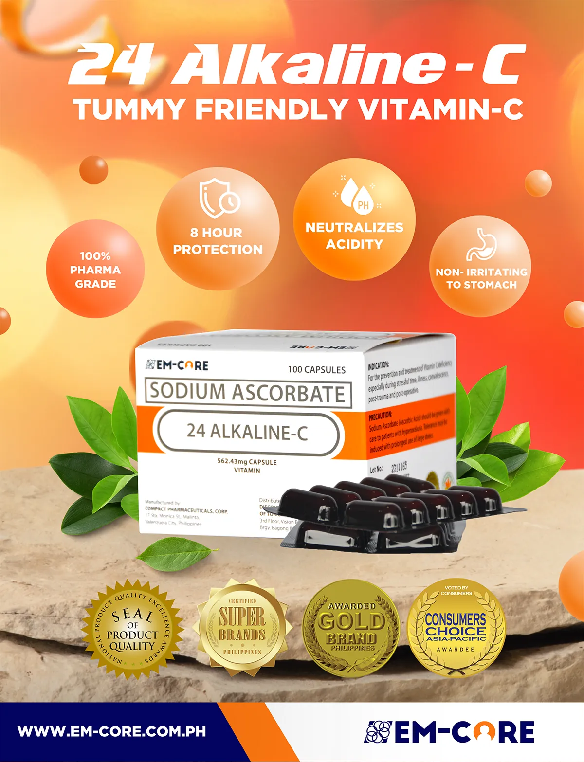 24 Alkaline-C is a Vitamin C product formulated using Sodium Ascorbate, a buffered, non-acidic form of Vitamin C designed for better tolerance and everyday use.